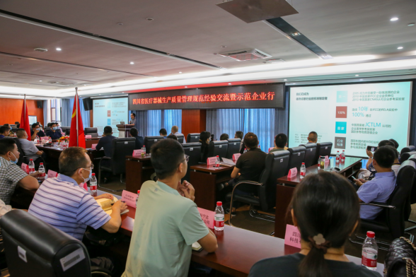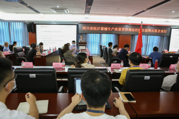现场观摩结束后,四川海汇药业有限公司、迈克生物股份有限公司等8家示范企业代表就本企业实施博天堂娱乐生产质量管理规范中的亮点,如法律法规学习宣贯彻执行、落实管理者责任、人员培训、体系内审和管理评审情况,以及如何把控产品质量,将质量管理规范理念融入到实际工作中,持续改进生产质量管理体系等方面进行了面对面分享交流。