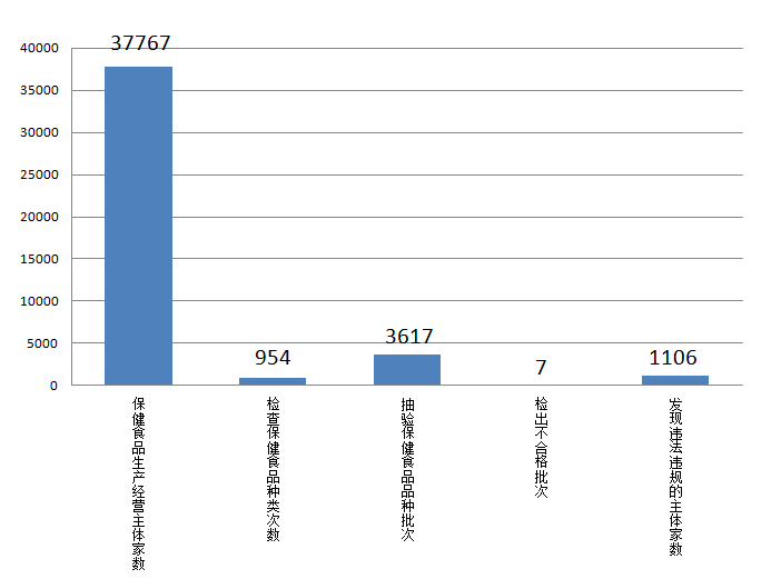 图3-1-1 2017年全省保健食品生产许可证分布情况图 二、保健食品生产经营企业日常监管情况2017年,全省共检查保健食品生产经营主体共37767家次,检查保健食品品种数954种次。抽检保健食品品种3617批次,检出不合格7批次,发现违法违规的主体家数1106家。