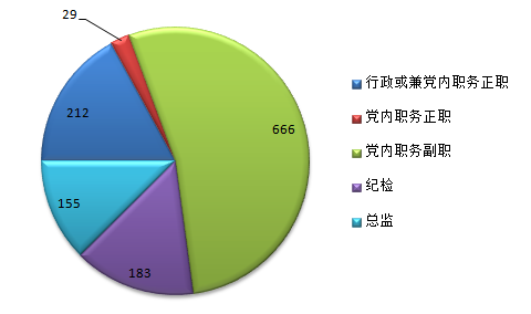 图1-2-2 2017年全省行政机构到岗人员所在部门分布图 (二)行政机构领导班子情况2017年食品药品监管系统行政机构领导班子情况:应配备职数1330人,现有人数1268人,其中行政或兼党内职务正职212人,只担任党内职务正职29人,副职666人,纪检183人,总监155人。