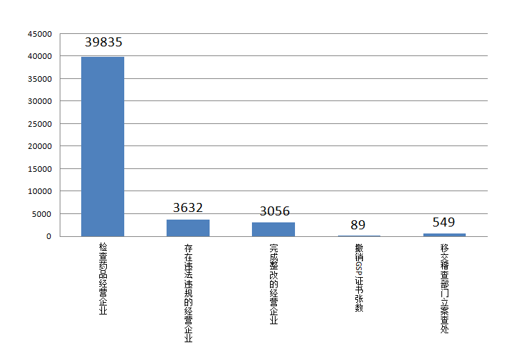 四、药品经营企业情况2018年上半年,全省期末实有企业数量30089家(其中生物制品7301家,专营中药材、中药饮片64家),本期新增2718家,本期减少2108家。 五、药品日常监管情况(一)药品生产企业日常监管情况2018年上半年,全省共检查生产企业1465家次,其中基本药物生产企业666家次,血液制品、注射剂等高风险品种生产企业126家次。出动检查人员4955人次,发现违法违规生产企业129家次,责令整改生产企业154家次,收回GMP证书8张,移交稽查部门立案查处38家。